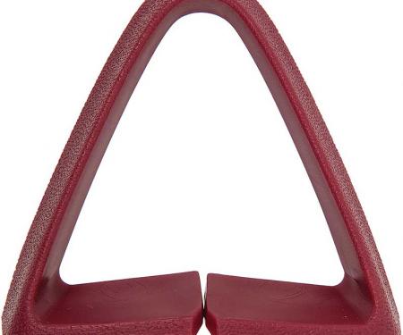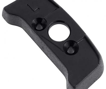 Reproduction of the original shoulder belt guide escutcheon designed to hold the shoulder belt retainer to the upper portion of the bucket seat back. Manufactured in injection molded ABS material to replicate the original design. Includes correct grain and mounting points. This item is commonly overlooked during the replacement of seat upholstery and seat/shoulder belt related items. RH passenger side. Paintable to desired color.