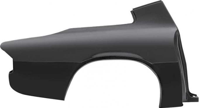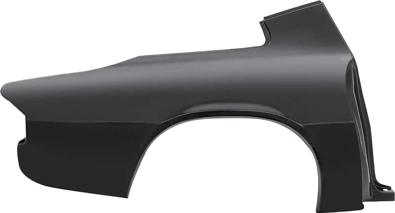 Reproduction full quarter panel for 1975-81 Camaro models with rear spoiler. Each quarter panel is manufactured in quality stamped steel and matches the original in both quality and fitment. Not just a replacement skin, this panel replaces the entire quarter panel section including the door jamb, trunk gutter, partial upper sail panel, and more. Designed to attach at the original factory seams for a clean, precise installation. Ready to be prepped, primed, and painted without stripping.