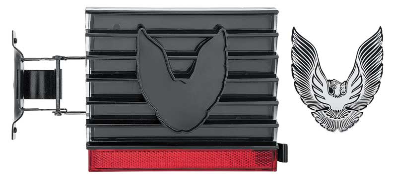 Reproduction of rear panel fuel door assembly for 1979-81 Firebird and Trans Am models. Features smoke lens and includes a new silver and black Firebird emblem for the fuel door. Each injection molded fuel door is manufactured to original specifications and comes with the red lower reflector and the door hinge bracket pre-attached for a more convenient installation. The silver emblem attaches to the fuel door with double-sided 3M tape that is included with the kit.