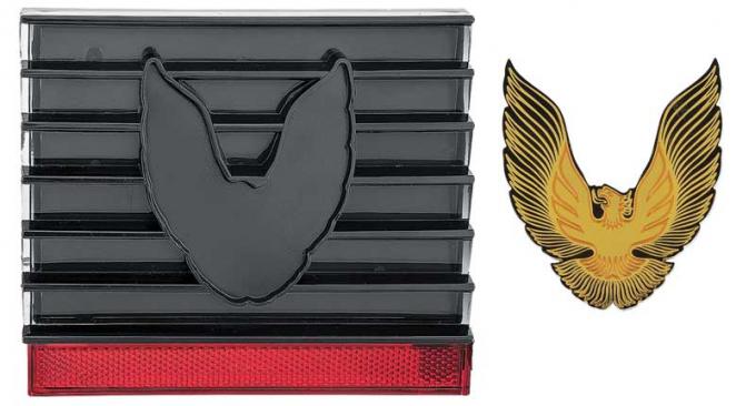 Reproduction of rear panel fuel door cover for 1979-81 Firebird and Trans Am models. Features smoke lens and includes a new gold and black Firebird emblem for the fuel door. Each injection molded fuel door is manufactured to original specifications and comes with the red lower reflector. The gold emblem attaches to the fuel door with double-sided 3M tape that is included with the kit.