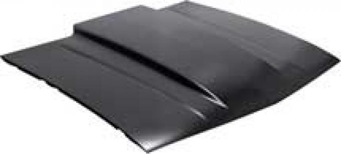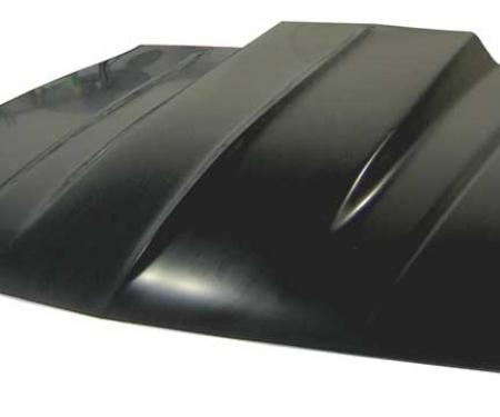 Stamped steel reproduction hood for 1982-92 Chevrolet Camaro models, designed with a cowl induction style 2-inch rise and distinctive center ridge design. This hood is perfect for the high-performance enthusiast seeking a more aggressive appearance than the standard style hood while maintaining a factory-style fit. The OE-style cowl induction scoop features a low center ridge in the scoop area for a subtle yet aggressive profile. Manufactured to factory specifications for proper fit and finish, this hood bolts directly to stock hinges and provides an OE-style fit with a performance-oriented appearance.
