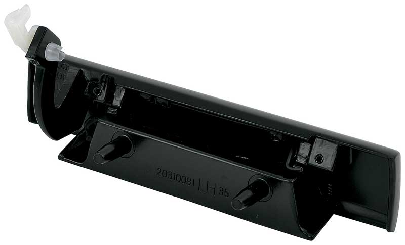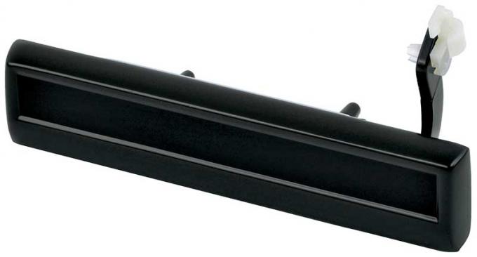 Reproduction exterior door handle for a wide variety of GM models including Buick, Cadillac, Chevrolet, Oldsmobile, and Pontiac. Produced in die-cast metal with a glossy black coating, these handles are typically designed to be painted the body color of the vehicle. Includes the plastic clip to attach to the linkage. Replaces OE # 20332647 or Partslink # GM1310126.