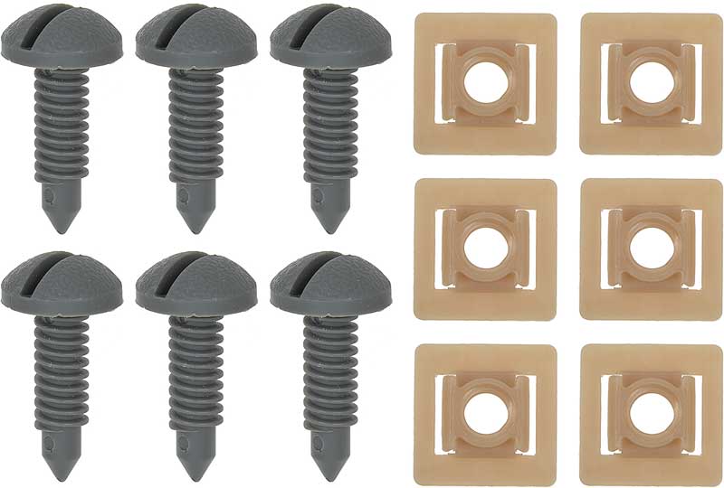 Reproduction of the rear hatch screw and nut set for 1982-92 Camaro and Firebird models. This set of 6 screws and 6 nuts is for attaching the moldings around the inside of the rear hatch area.