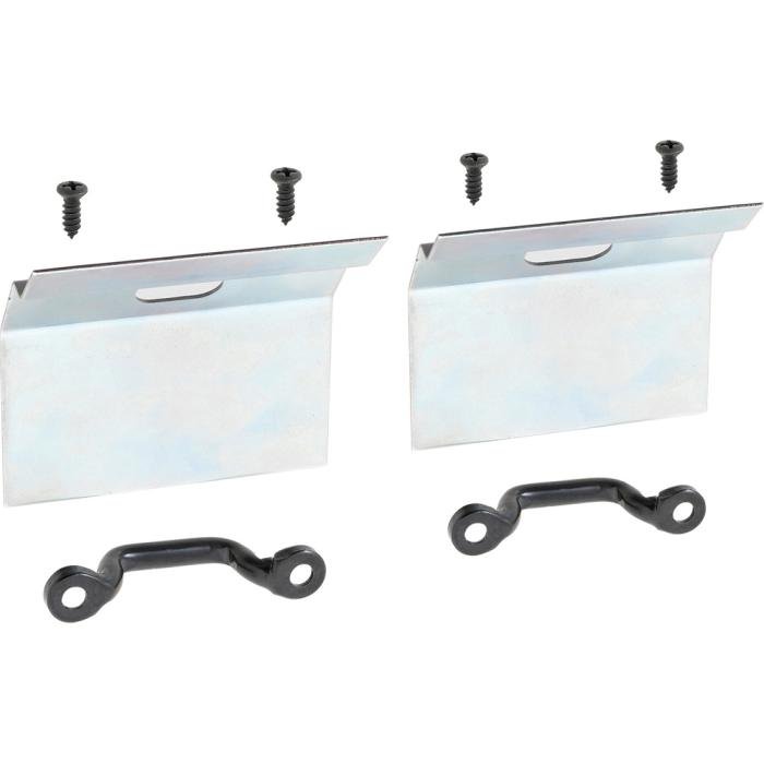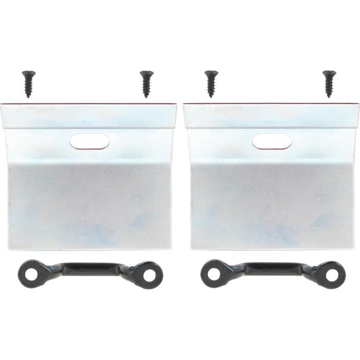 Correct reproduction T-Top stowage retainer bracket and hook set for 1982-92 Camaro and Firebird models. Each bracket is manufactured in stamped steel to the original factory dimensions for an original fitment. The brackets mount in the tail panel and the U-shaped retainer (hook) mounts onto this bracket with two screws. The T-Top stowage bag hooks onto the U-shaped retainer to keep t-tops safely secured during stowage.