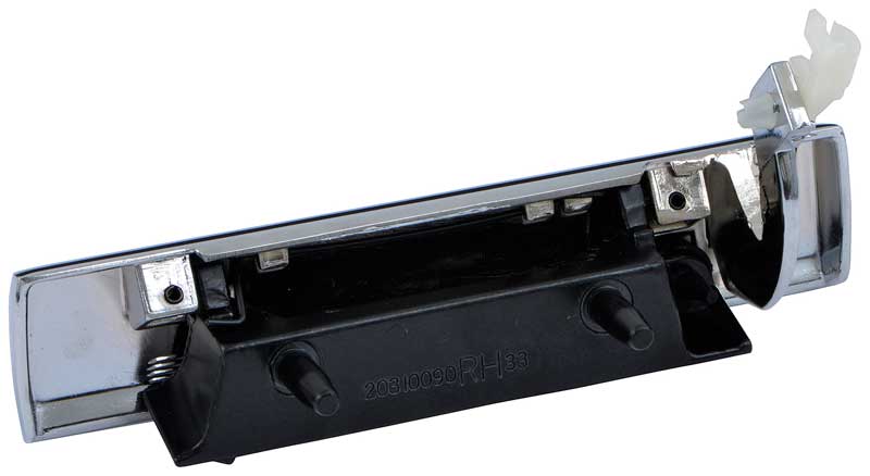 OER reproduction of the original door handle for various GM vehicles. Produced in die-cast metal, chrome plated, and polished to a brilliant shine. This exterior handle is the perfect replacement for an inoperative, pitted, or broken original handle. For use on the RH passenger side.