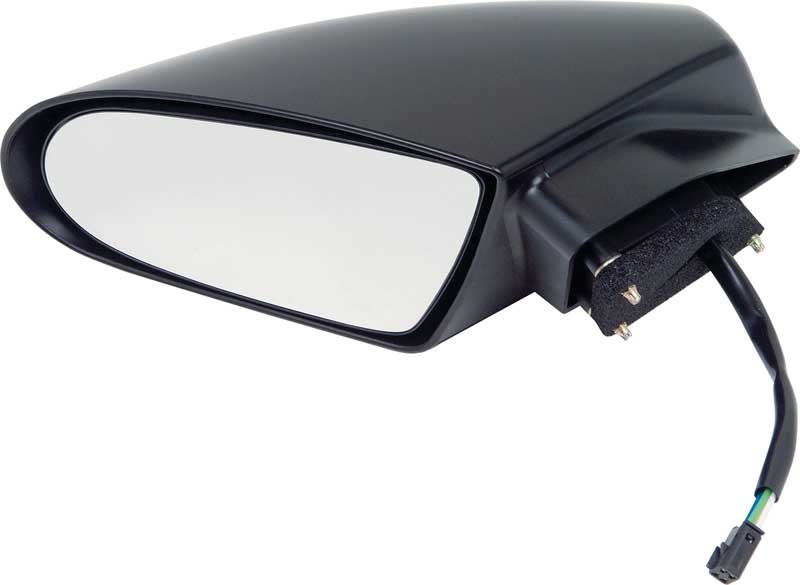 Reproduction power outer door mirror for 1993-2002 Chevrolet Camaro models. Each mirror assembly offers an authentic appearance and fitment. Each mirror is ready to paint, plug-in, and mount to the door. Includes the outer door mirror with the harness and plug for simple plug-n-play installation. For vehicles originally equipped with a remote style electric mirror. This mirror is the non-heated, non-folding style mirror.