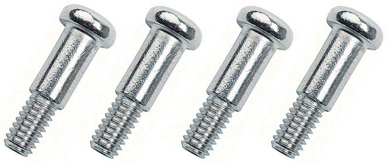 Reproduction shouldered lens screw set, chrome-plated stainless steel for superior corrosion resistance and outstanding appearance. Replacement lens screws used on various GM vehicles. Most 1965 and later GM vehicles used this shouldered type screw. Common uses include turn signal lenses, park lamp lenses, tail lamp lenses, etc. Measures #8-32 x 1" with 5/8" Shoulder. 4 piece screw set.