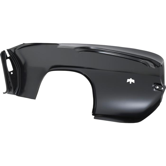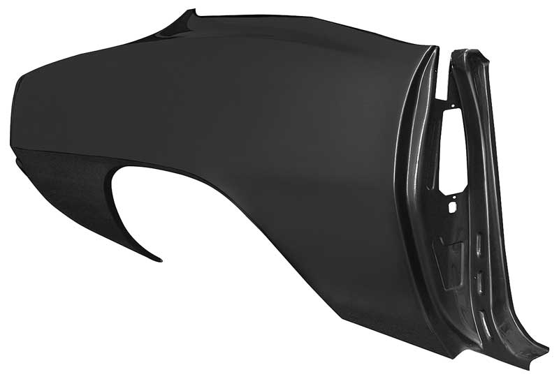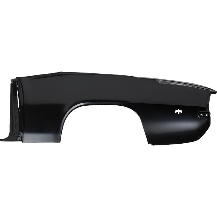 Reproduction complete quarter panel for 1969 Firebird convertible models. Each quarter panel is manufactured in quality stamped steel and matches the original in quality and fitment. Not just a replacement skin, this panel replaces the entire quarter panel section including the door jamb, trunk gutter, reinforced bumper bracket area, and more. Will attach at the original factory seams. Panel features a black electrophoretically deposited coating (EDP, or E-coat) for corrosion protection.
