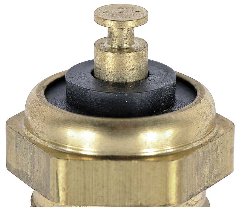 The temperature sending unit screws into the side of the cylinder block or on the intake manifold and allows the temperature gauge to function properly. This OER® Authorized reproduction is produced using the correct button-style terminal end with the correct housing and resistance for accurate temperature gauge reading. 1/2" x 14 NPTF.
