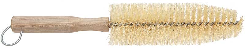 Brush measures approximately 12" in length, with 6-1/2" of its length reserved for bristles. Natural Tampico bristles are twisted in a rust resistant wire. Bristles are medium in firmness, resistant to solvents and heat, and measure 1" to 2" in diameter.