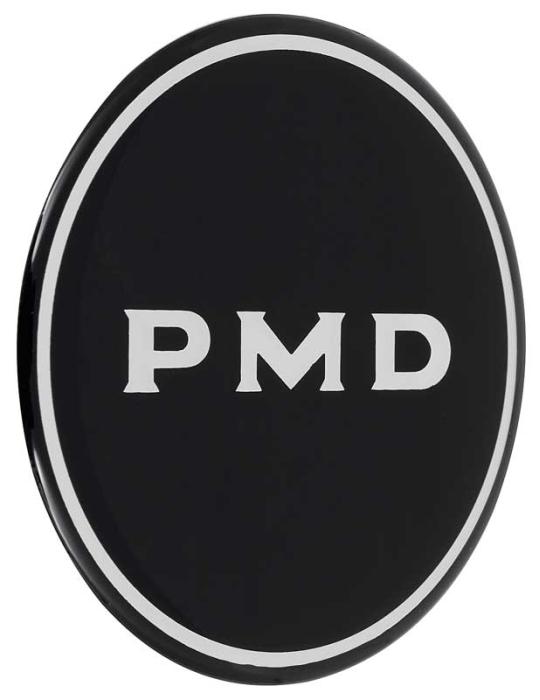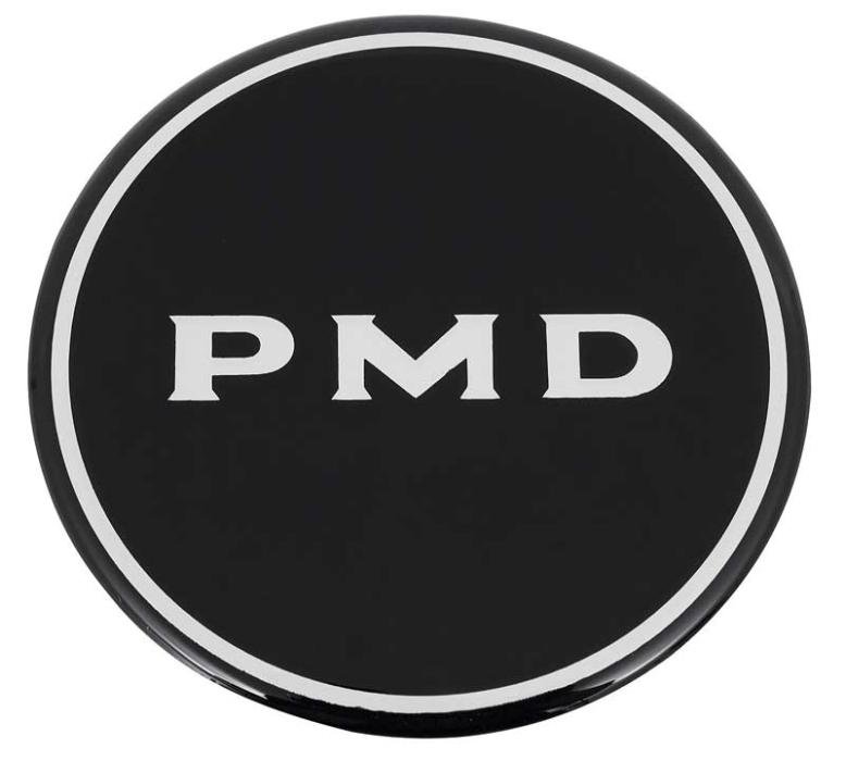 This distinctive domed wheel center cap decal is manufactured with a poured polyurethane coating to provide an upscale 3-dimensional look and features a "PMD" (Pontiac Motor Division) logo on a black background. Made of a soft Mylar with a clear polyester coating. Each decal measures 2-15/16" in diameter. For use on the R15 wheel that uses a 2-5/16" emblem circumference.