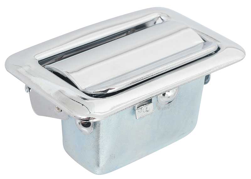 Reproduction of the rear side panel ash tray assembly designed for various GM models including 1968-74 Camaro and Firebird models. The chrome-plated smooth lid design was an original GM design for service parts. Includes ashtray insert. Measures 3-1/8" x 2". Sold individually. 2 required per vehicle. NOTE: See listing below for fitment information.