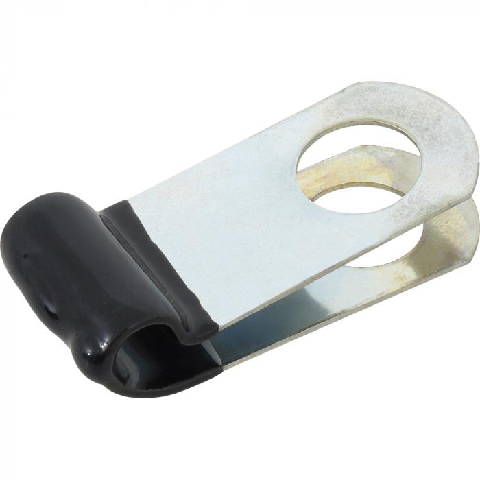 Replacement back-up lamp switch wire harness retaining clip for models with a muncie transmission. This clip mounts the reverse back-up lamp switch wire harness to the bellhousing. This is an exact reproduction of the original GM part with the latex coating. Measures appx. 2" x 7/8".