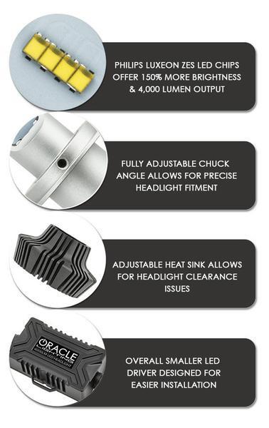 | Contents | (2x) ORACLE 880 4,000+ Lumen LED Headlight Bulbs,(2x) 880 Connectors, (2x) 880 Compact LED Drivers |