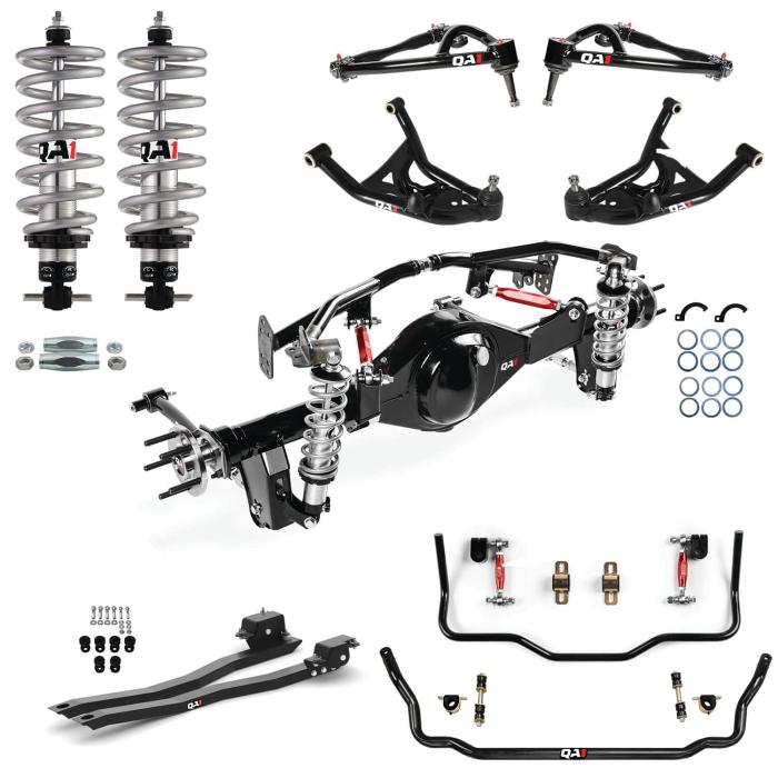 QA1’s Handling Kit is a complete suspension solution for ’70-‘74 Camaro/Firebird (GM F-body) owners aiming to enhance street and track performance. This kit replaces front and rear suspension, featuring adjustable coilovers and a 4-link setup optimized for wider wheels and tires, along with a custom QA1 9" rear housing for peak performance.