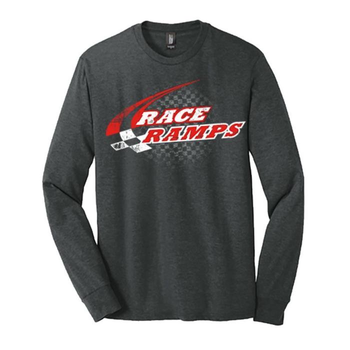 Show your Race Ramps pride with this 2XL-sized comfortable long-sleeve crew neck T-shirt! The blended fabric features a rib-knit neck and cuffs, and comes in Black Frost with the Race Ramps checker logo on the front.