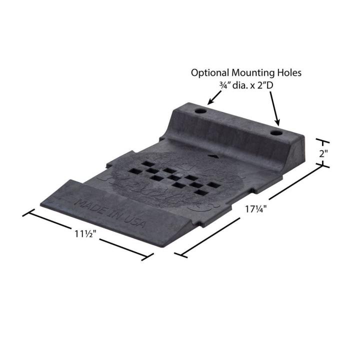 Use these two hard rubber Pro-Stop Parking Guides to easily park in your garage, driveway or trailer. They grip to the floor just like a tire, and come with pre-drilled holes if you choose to permanently mount them.