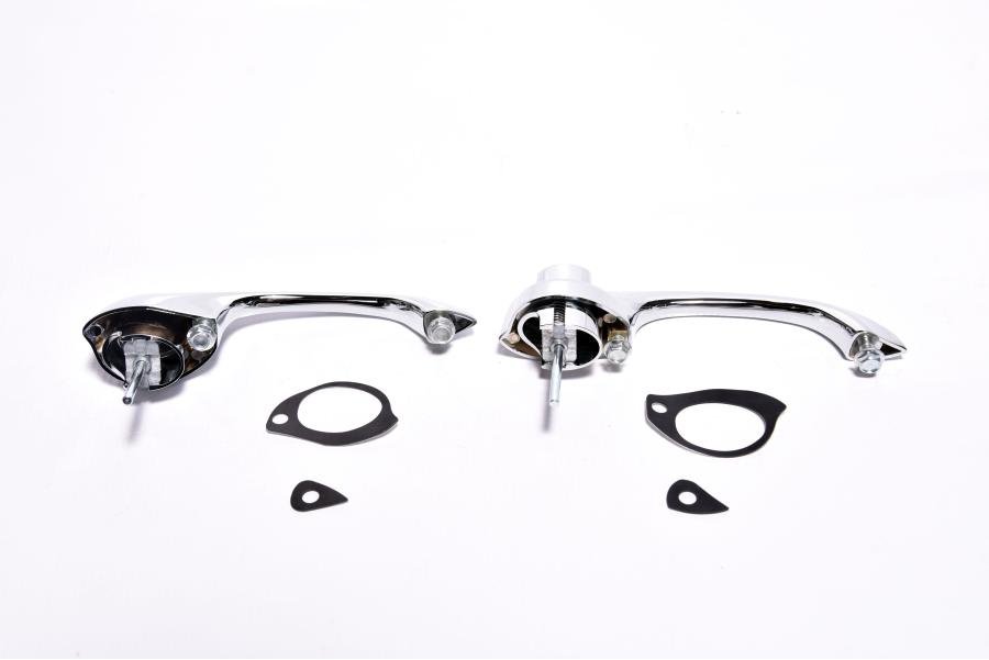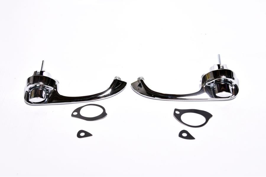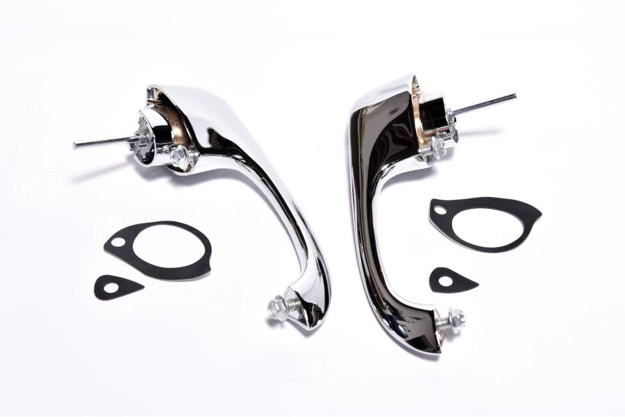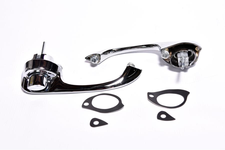 The 1967-1969 Camaro / Firebird Outside Door Handle Kit is a premium replacement set that restores both the function and shine of your classic GM muscle car’s exterior doors. This kit includes a pair of chrome-plated handles—driver and passenger side—crafted to factory specifications for fit and appearance. Each handle is die-cast for strength and durability, then triple chrome-plated for a show-quality finish. Also included are push buttons and mounting hardware, making this kit ideal for restorations, repairs, or upgrades to worn or pitted originals.