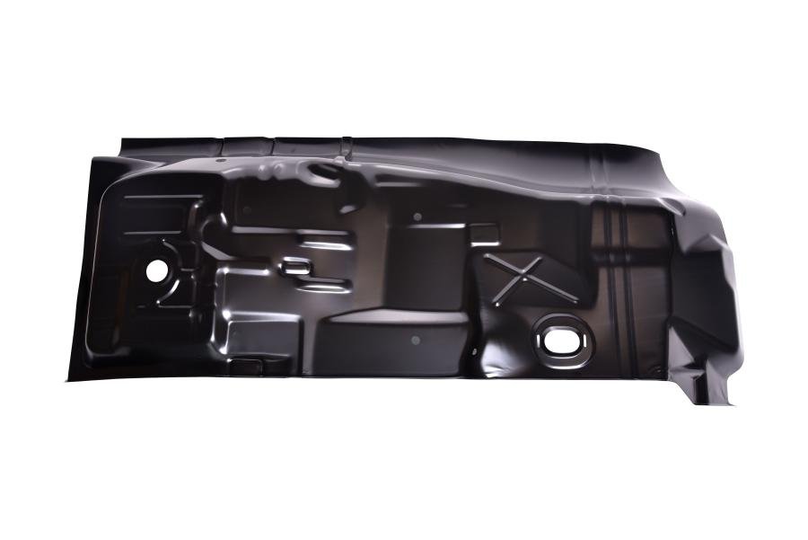 Instructions: Remove the damaged floor sections by cutting along original seams and supports. Clean and prep the surrounding areas. Test fit the new full-length panel, ensuring proper alignment with the rocker panels, toe board, and transmission tunnel. Weld securely into place, grind welds smooth, then apply seam sealer, primer, and paint for long-term protection.