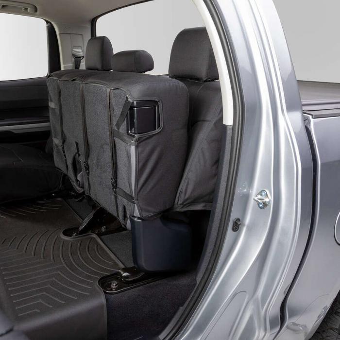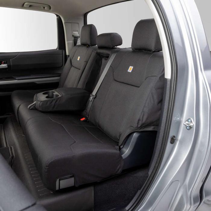 Our Carhartt® Super Dux Seat Covers are our toughest custom seat covers yet. Born from work. Built for Play! These seat covers are custom crafted from durable 1,000 denier Cordura nylon fabric and foam-backed for added comfort. Each seat cover is specially treated with Rain Defender® DWR technology that makes water bead up and roll off with ease. Perfect for keeping your factory seats protected from whatever you throw at them.