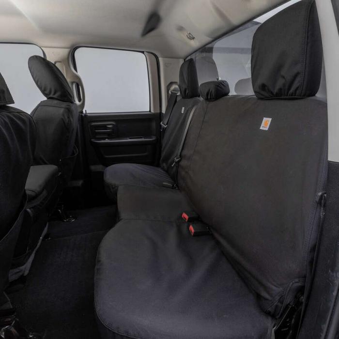 Our Carhartt® Super Dux Seat Covers are our toughest custom seat covers yet. Born from work. Built for Play! These seat covers are custom crafted from durable 1,000 denier Cordura nylon fabric. Each seat cover is specially treated with Rain Defender® DWR technology that makes water bead up and roll off with ease. Perfect for keeping your factory seats protected from whatever you throw at them.
