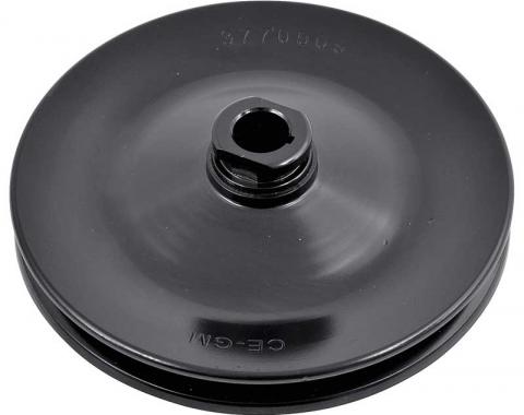 Nice reproduction, made in the USA single groove power steering pump pulley. 67-68 350, 69 all engines without air conditioning, 69 396/375. Stamped steel. (Photo shows similar PSP-105)
