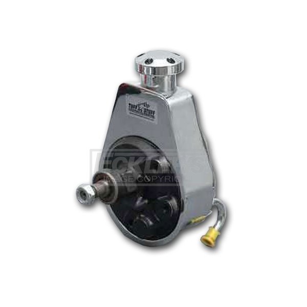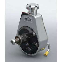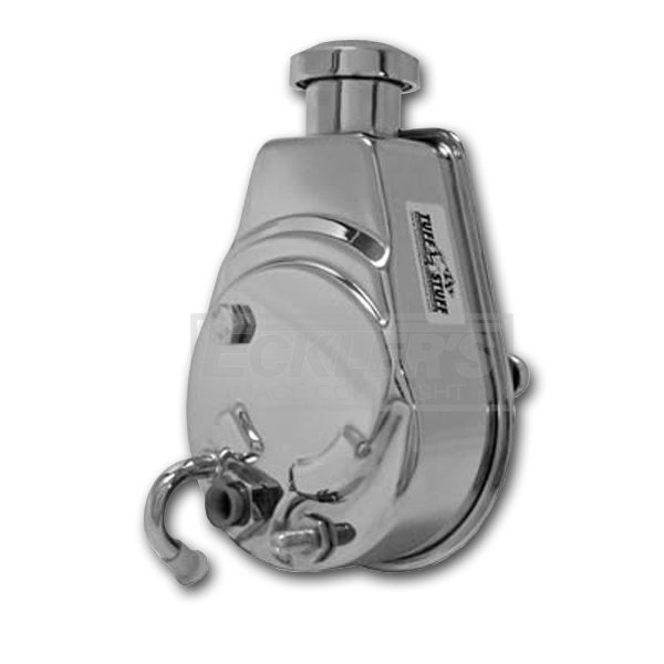 Reproduction Power Steering Pump Chrome Finish Black Powdercoated Pump 5/8-18 Inverted Flare Outlet Pulley Not Included For 1967-1974 Camaros The power steering pump on your 1967, 1968, 1969, 1970, 1971, 1972, 1973, or 1974 Camaro can eventually fail from fluid leaks. Being a closed system, the steering pump relies on several components, and with leaks, can suffer from a starvation of fluid. It's supplied complete with a polished billet aluminum cap and a new pulley washer & bolt. You can complete the great dress-up look with the triple chrome plated pulley (P/N C-6176) that matches the cap. Manufactured with all new parts to factory specifications, Tuff Stuff uses special fixtures, plating racks and anodes to ensure the brightest finish. Not only will it look great under the hood, but it is essential for making your power steering work properly.
