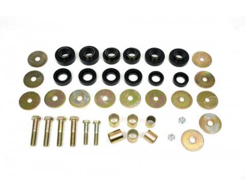 This body mounting kit contains all mounting bushings. It is correct S.B.R. compression molded with steel sleeve inserts. Bushing are made of high grade non recycled rubber.