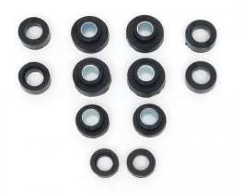 This body mounting kit contains all mounting bushings. It is correct S.B.R. compression molded with steel sleeve inserts. Bushing are made of high grade non recycled rubber.