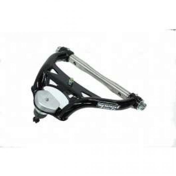 Stronger Than The Factory Control Arm Improved Suspension Geometry Provides Additional Built In Positive Caster Which Improves Your Handling Ability Urethane Bump Stops Provide Ball Joint Protection At Full Drop Complete Factory Replacement With No Modifications Required To Install Control Arms Bushings Made Of Black Acetron GP? That Have 0 Deflection Control Arms Come Standard With Stainless Steel Cross Shafts Control Arms Come Powder Coated With New Hardware Low Drag & Self Lubricating Properties For A Bind Free Operation Instructions On How To Install The Arms Along With Recommended Allignment Specs The Tubular Upper Control Arms are CAD designed Mandrel bent and all components are either laser cut or CNC machined for exact tolerances. They are made from 1.25 seamless tubing with a wall thickness of .125. The control arms come complete powder coated with stainless steel cross shafts, Acetron GP? type bushings and Urethane Bump Stops.
