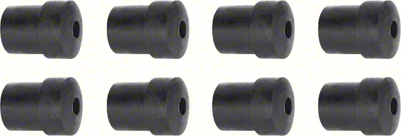 This reproduction rear spring shackle bushing set is designed for 1967-1969 GM models and manufactured in high quality EPDM hard rubber to replicate the factory originals in both fit and performance. These bushings restore proper suspension movement, eliminate excess play, and help return your vehicle to smooth, factory-correct ride quality. Ideal for replacing cracked, shrunken, or worn bushings.