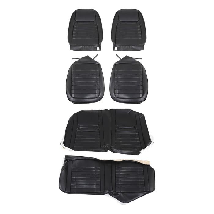 - Full sets include upholstery pieces for both front bucket seats and the rear bench seat.