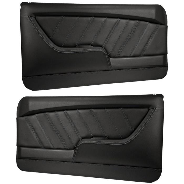 TMI Front Molded Door Panels, Sport-R Pattern 1969 Chevrolet Camaro Coupe, Black Madrid Vinyl, Black Unisuede W/Black Stitch 11-80052-2295-99-BKS