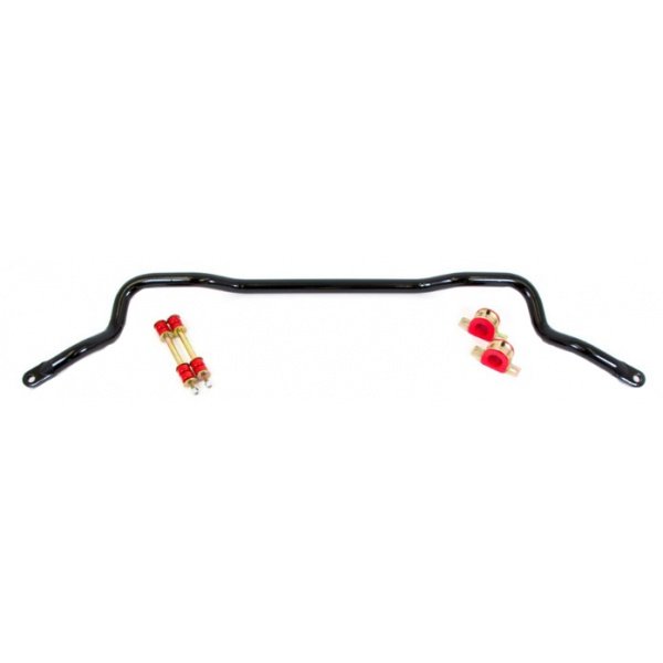 The UMI 22mm (7/8”) light weight tubular rear sway bar is designed to reduce body roll, understeer and increase corning capabilities resulting in a more balanced suspension. This rear sway bar is more rigid than the factory 19mm (3/4”) rear bar and bolts directly into place with no modifications. UMI’s Rear sway bar is manufactured from tubular high carbon steel, CNC bent and formed as one piece to ensure maximum strength and performance. Each kit includes new heavy duty end links and greaseable sway bar bushings with new zinc plated clamshells. Sway bar is available powder coated bright red or gloss black for a durable long lasting finish. Manufactured in the USA.