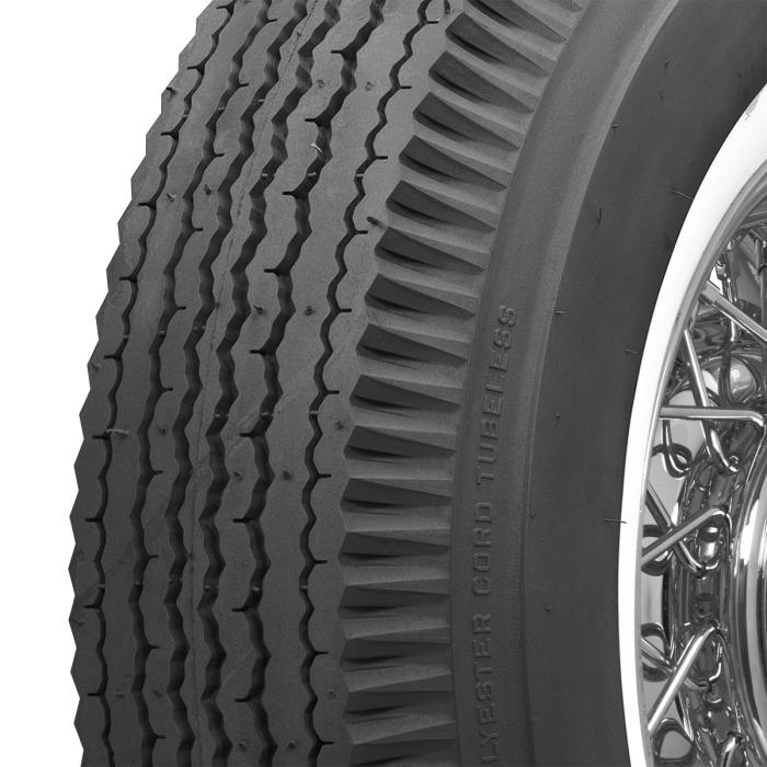 Factory production white wall tire commonly found on many American automobiles manufactured 1957 to 1961. Most popular on Cadillacs, Buicks, Chryslers, Lincolns and other full bodied cars.Features:"Fluted" shoulderOriginal Tread design Made in USA.