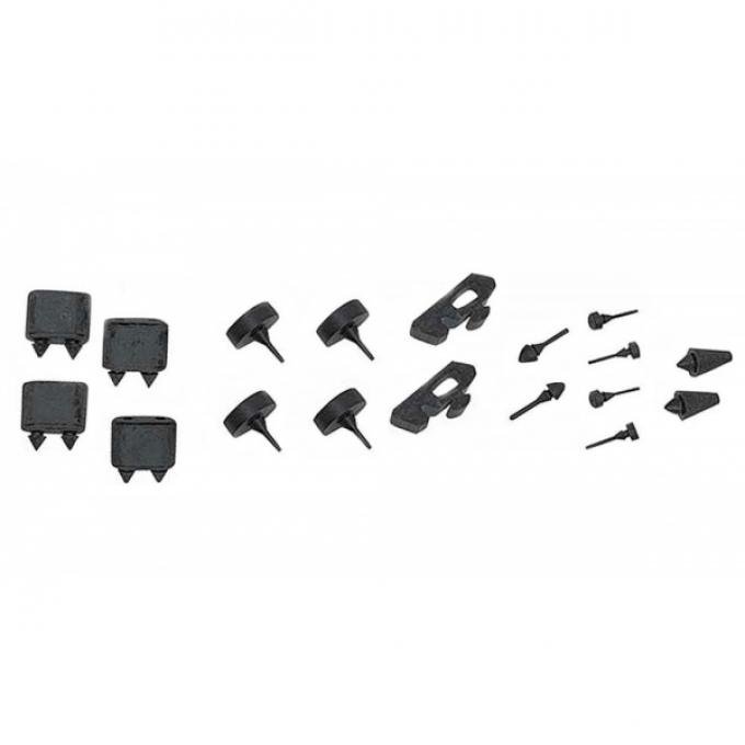 On your Camaro, rubber items like stoppers and rubber bumpers are the first things to wear out due to use and the weather elements. However, they are extremely important in protecting vital parts of your Camaro like doors, the hood, trunk lid, console, and glove box. If you are restoring a 1969 coupe or convertible standard Camaro, Super Sport (SS), Rally Sport (RS) or Z28, you will need a new rubber bumper stopper set. With a full eighteen piece kit of molded black rubber stoppers, you are getting the most for your money.