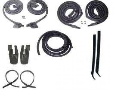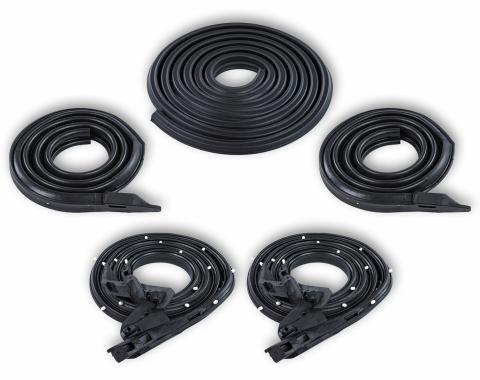 (1) Pair of Door Weatherstrips (1) Pair of Roof Rail Weatherstrips (1) Trunk Weatherstrip (1) Pair of Quarter Window Seals with Steel Inserts (1) Pair of Quarter Window U-jamb Seals with Steel Inserts (1) Pair of Window Run Channels (1)…