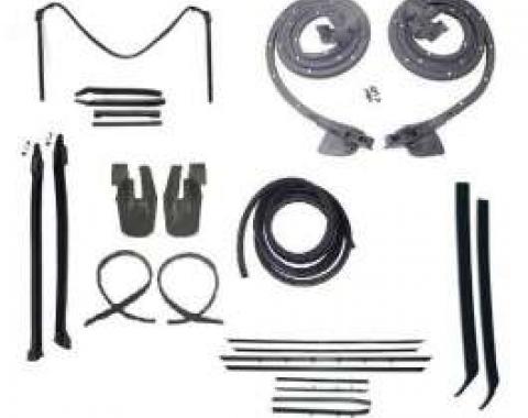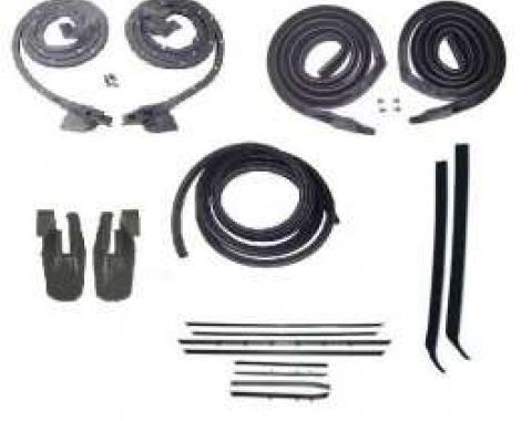 (1) Pair of Door Weatherstrips (1) Pair of Roof Rail Weatherstrips (1) Trunk Weatherstrip (1) Pair of Quarter Window Seals with Steel Inserts (1) Pair of Quarter Window U-jamb Seals with Steel Inserts (1) Set of Functional Style Window…