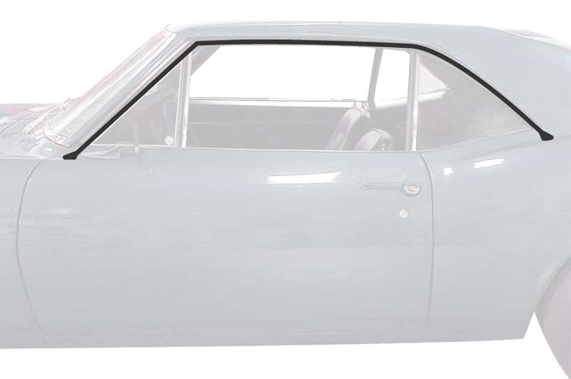 Reproduction roof rail weatherstrip set for 1967 Camaro and Firebird models. Manufactured by OER® to exact factory specifications in correct OE style soft latex rubber. This weatherstrip features correct molded ends for proper installation. The weatherstrip covers the windshield pillar post and the entire roof rail section. Sold in pairs.