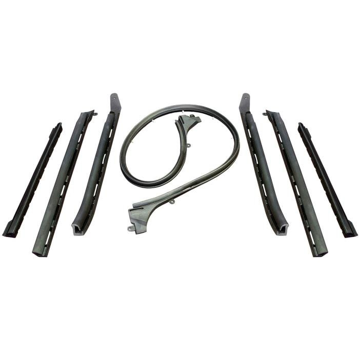 For 1968-1969 Camaro and Firebird convertibles, this convertible top-rail kit is a must-have for restoring or maintaining your classic car. Designed specifically for these models, this 7-piece set includes all left-side and right-side top-rail seals and a windshield top header seal (p/n HD 1501). Crafted by SUPERsoft, these seals are engineered to provide better sealing than competitor brands, ensuring your convertible stays dry and protected from leaks. The durable materials used in this kit are free from accelerants or cheap fillers, which means they won’t prematurely age or fail, giving you long-lasting performance. Installation is straightforward, with each piece fitting snugly along the top rails and windshield header to create a tight, weatherproof seal. Backed by a 30-year warranty, this kit offers peace of mind and confidence in your purchase.