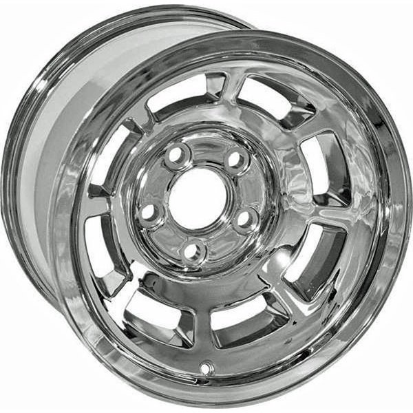Quality Reproductions of 1976-1982 Corvette Wheels Aluminum Construction With Triple Chrome Plating Requires Wheel Cap(#50-10869) & Lug Nuts(#50-10865) 15 x 8 5-Lug Orientation Each A Corvette-style chrome replacement wheel may be just the extra style your Chevelle needs. The wheels on your classic Chevelle set the style for the rest of your car to follow. These Corvette-style wheels are constructed of aluminum with a triple chrome plating and are reproductions of the 1976-1982 Corvette wheels. Note: May rub the front inner or outer fender when turning.