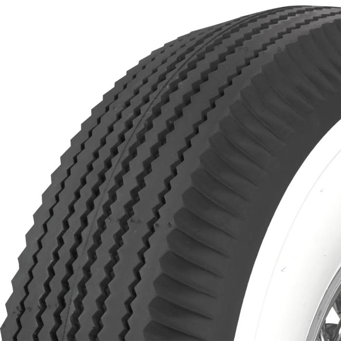 This product features a genuine wide whitewall sidewall style. This means that the bright white rubber is added directly to the tire sidewall during initial construction of the carcass, resulting in a truly integrated, high-quality product after vulcanization. Wide whitewall tires were a very popular choice from the 1930's through the end of the 1950's, and were eventually phased out of mainstream production by 1962. Originally, wide whitewall tires featured a bias ply construction, Coker Tire offers these tires in both original style bias ply and modern radial construction.