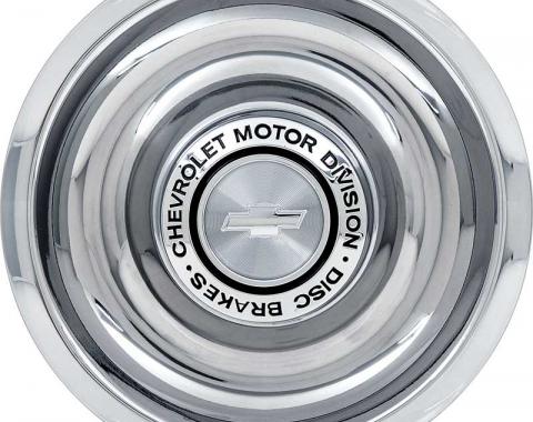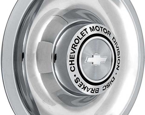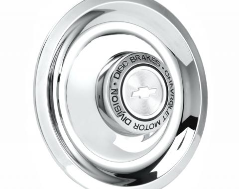 For models with disc brakes, this stainless steel Rally wheel center cap is a wonderful addition for your vehicle. The center cap features the words "Chevrolet Motor Division Disc Brakes" and a Bow Tie in the center. Sold individually…