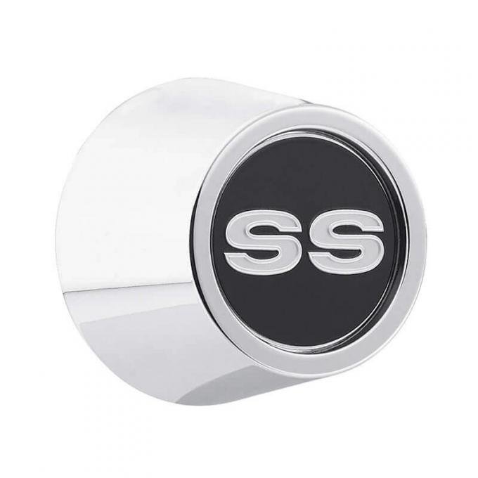 This die cast zinc hubcap features the 'SS' logo originally found on the 69-70 GM A-Bodies with a black backround and chrome bezel. Made to fit legendary wheels.