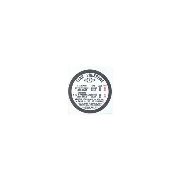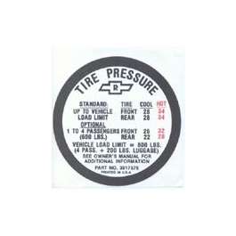 Reproduction Of Original This Camaro reproduction tire pressure decal has been manufactured to original factory specifications using today's modern manufacturing techniques. You will find the fit, finish and function will work superbly for your restoration.