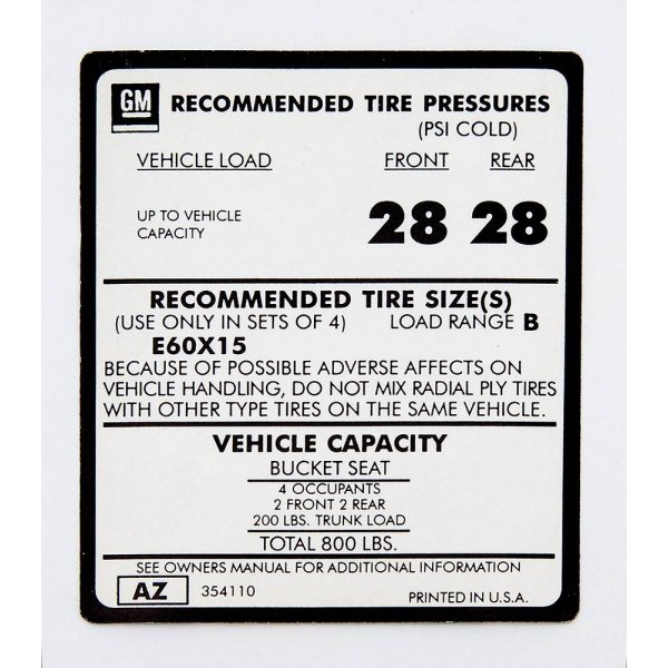 Best Quality Reproduction Tire Pressure Decal High Quality Printed Decal E60 x 15 For V8 Cars With F41 (Gymkhana) Suspension Package